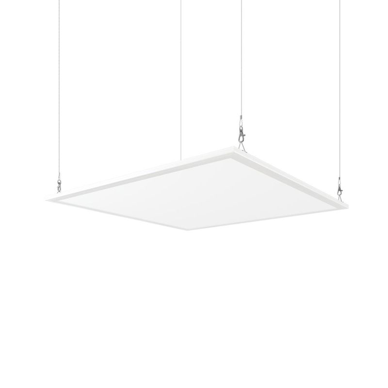 Le montage est rapide et facile : sans avoir besoin de vis, les embouts de plafond sont fixés au plafond. Ensuite, le câble est inséré dans les tubes et les embouts de plafond, puis bloqué à l’aide du mécanisme à ressort. Notre kit comprend toutes les pièces de fixation nécessaires pour le panneau LED ainsi que pour la suspension au plafond.