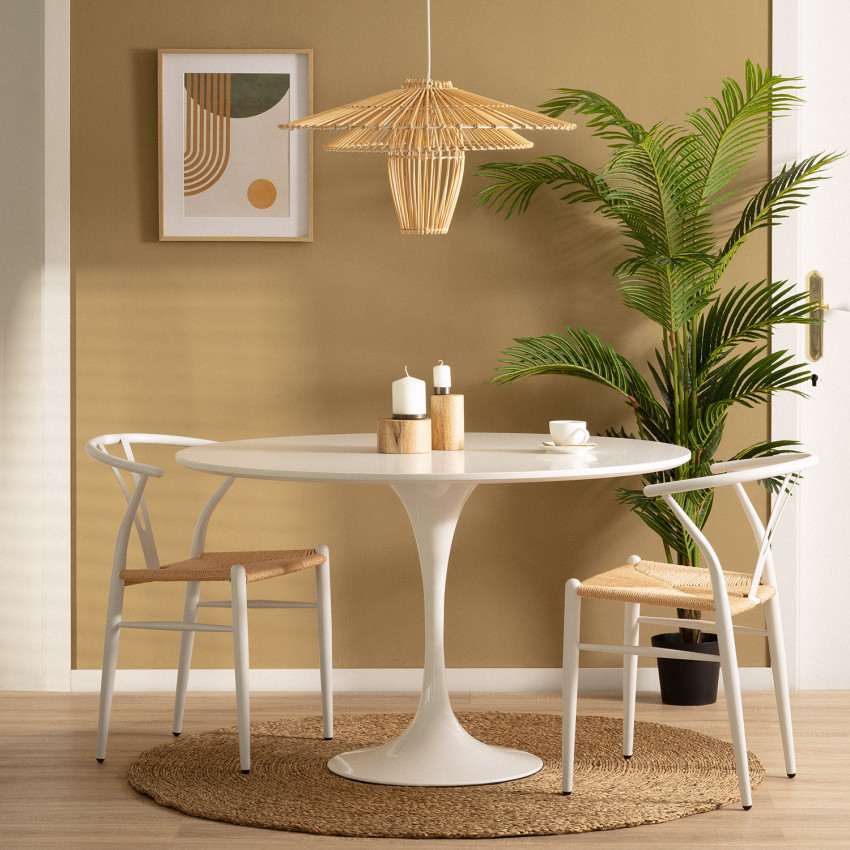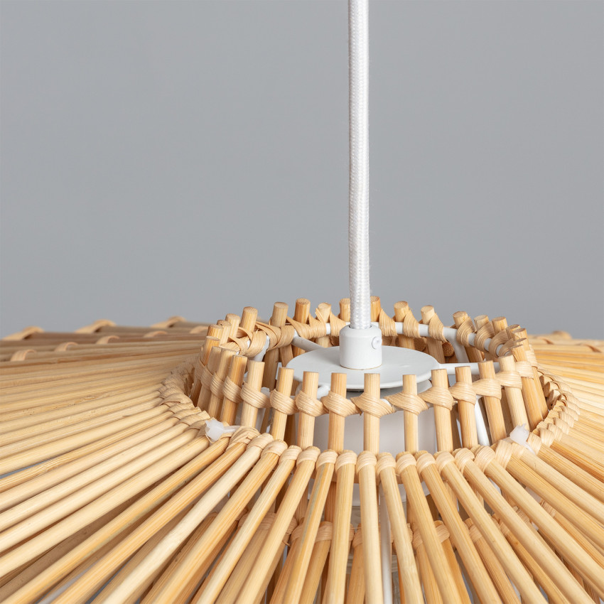 On se laisse séduire par la simplicité et l’élégance de cette suspension . Avec son abat-jour en bambou, cette lampe suspendue de fabrication artisanale présente un style ethnique. Parfaite pour ajouter une note exotique et naturelle à la décoration, elle se combine volontiers avec la lampe à poser de la même gamme.